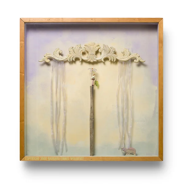 The Hippotych box constructions reflect my fascination with the circus and ideas of weight vs. weightlessness, conscious thought vs. subconscious. In Hippotych, each of the three hippopotami is firmly planted to the ground while acrobats, clowns and a ballerina perform high in the space above.